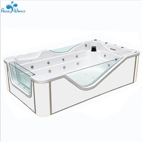 Moderno acrílico blanco de tres lados de vidrio para bebé Spa Super larga bañera independiente masaje baño Hospital uso incluye escurridor